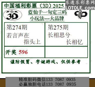 275期蓝仙子一句定三码