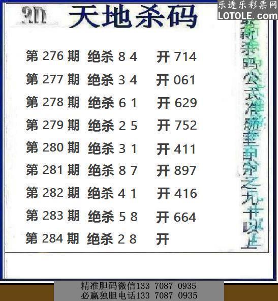 284期九台胆码