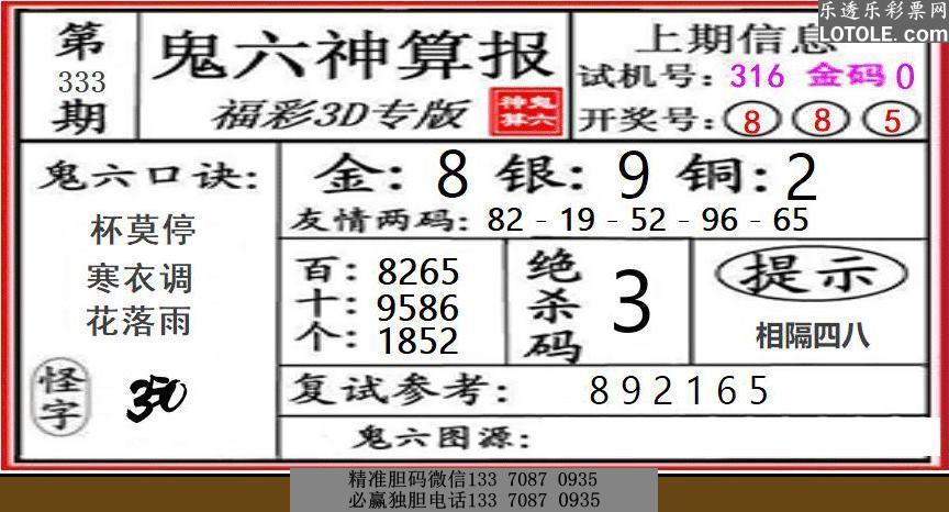 333期九台胆码