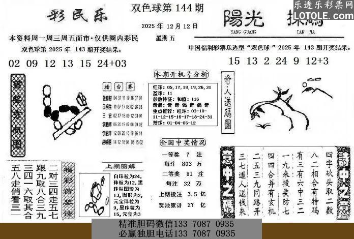 5144期彩民乐 阳光探码图文版