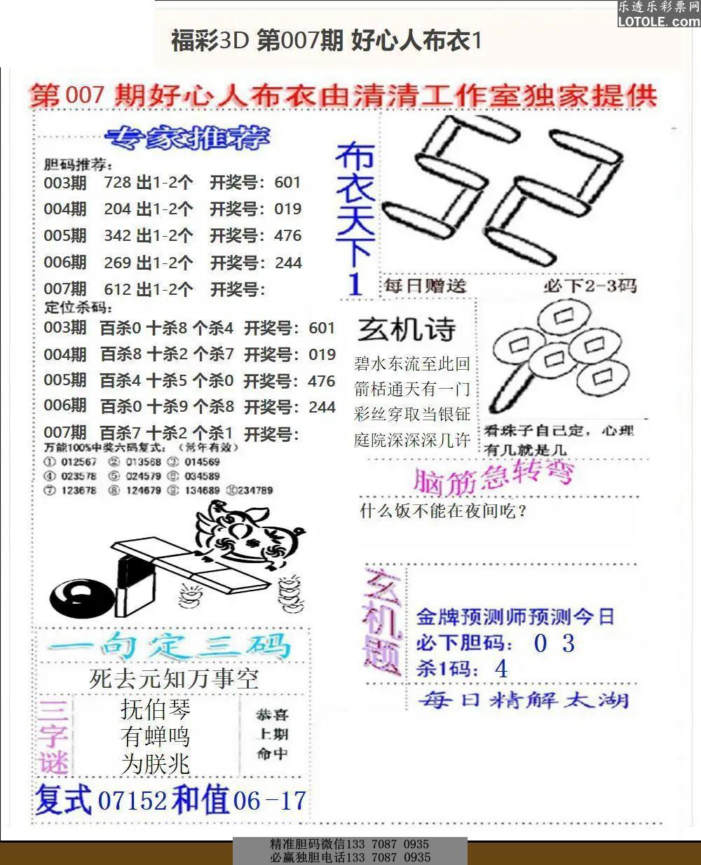07期蓝仙子一句定三码