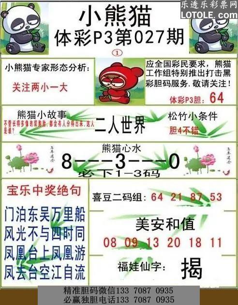 027期功夫熊猫内幕中奖图