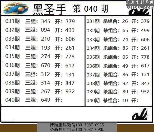 40期九台胆码