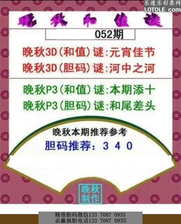 52期晚秋和值谜