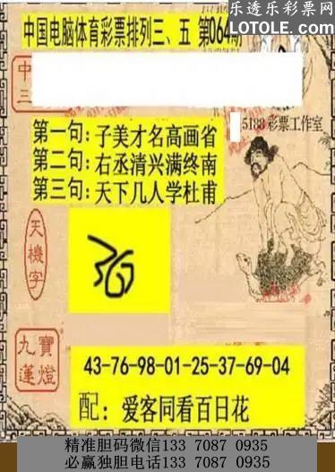 今日体彩p3字谜总汇