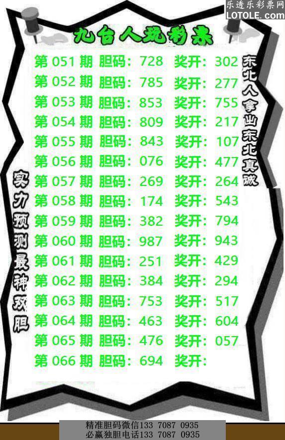 67期九台胆码