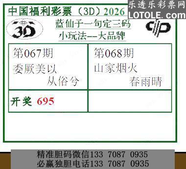 68期蓝仙子一句定三码