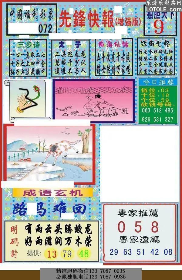 72期蓝仙子一句定三码