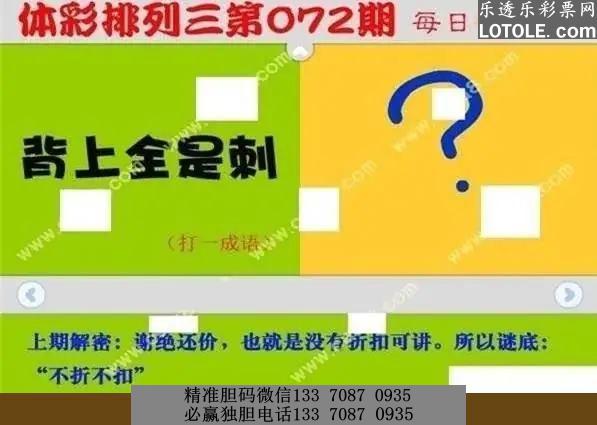 今日体彩p3字谜总汇